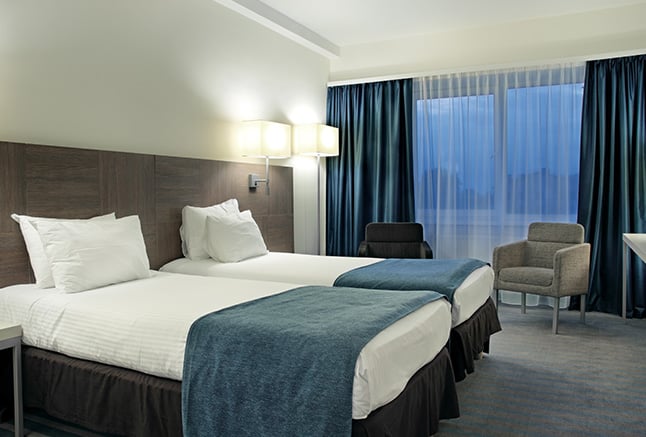 A double room with twin(two single) beds and private sink within the room. Shared bathroom. Inclusive of breakfast.